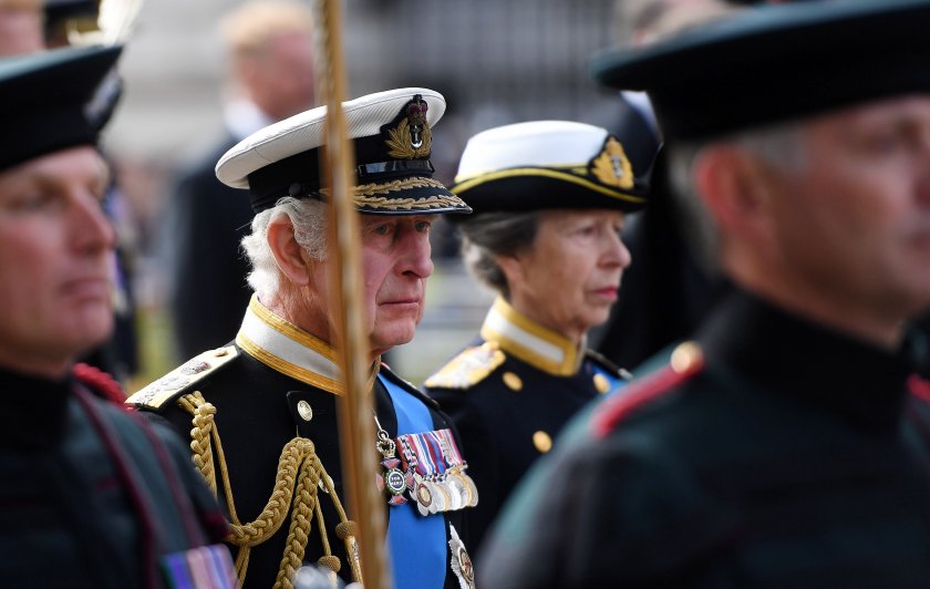 Прозвуча церемониален марш, поискан персонално от кралицата в осъществяване на гайдари и барабанчици от шотландски и ирландски полкове. А зад ковчега - новият крал Чарлз Трети, братята и сестра му и синовете му принцовете Уилям и Хари.