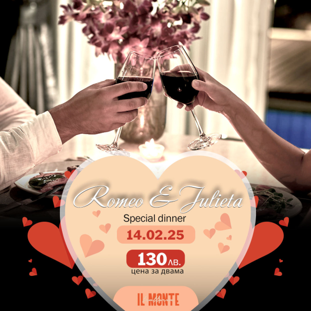 На 14 февруари ресторант Il Monte ще се трансформира в съвършеното място за сантиментална вечеря за двама. Осигурена е неповторима конюнктура, която съчетава уют, грациозност и жанр, като всяка детайлност е деликатно подбрана, с цел да предложи незабравимо прекарване. Специално основаното меню за празника ще изненада гостите с изискани ястия и деликатеси, които да приготвят сетивата за сантименталната вечер. За да добави още повече магия към този специфичен миг, виновността ще бъдат подбрани с внимание към всяко ядене, с цел да основат съвършената естетика с усетите.