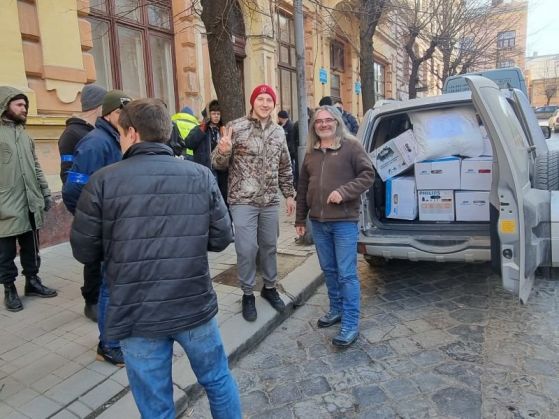 We easily find the address where we have to take the aid. There are about thirty strong men waiting outside. The Ukrainians are shockingly large. In Chernivtsi the war has not yet come and the men are wondering how they can be of the most use. That is why they are constantly crowding around the unloading point, and new and new aid vans and trucks stop there every minute.