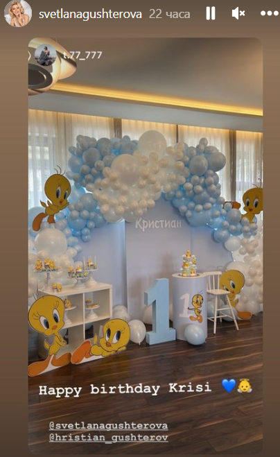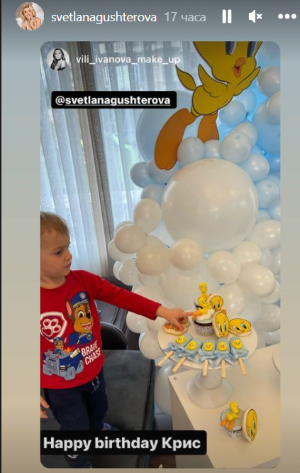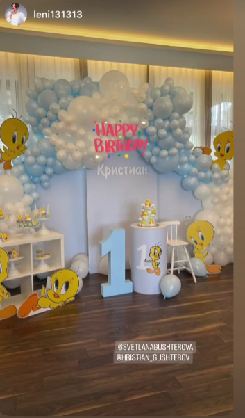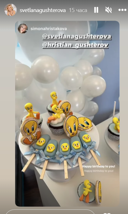 Гущерова не споделя нито къде е било празненството, нито пусна фотоси. Гордата майка показа сторитата на гостите си, които устойчиво са снимали тортата, украсата и сладките, само че не и дребния рожденик.