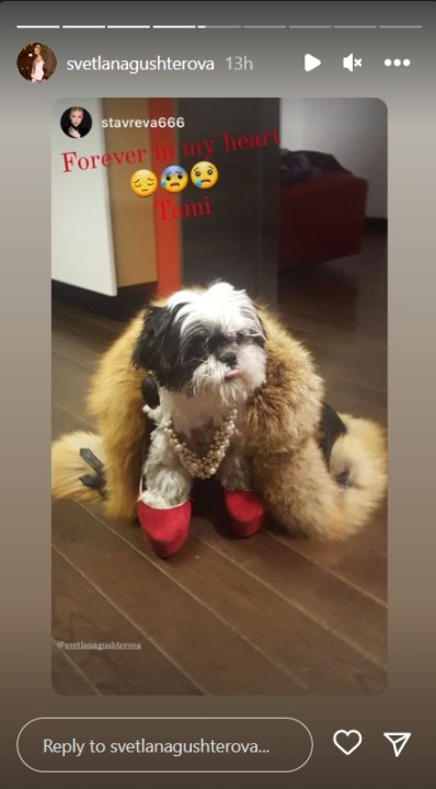 Става дума за обичаното кученце на русокоската, която тя е приемала надалеч не просто като домакински любим. От фрагментите, които Гущерова споделя в профила си, е видно какъв брой обгрижвано е било кутрето Тами.