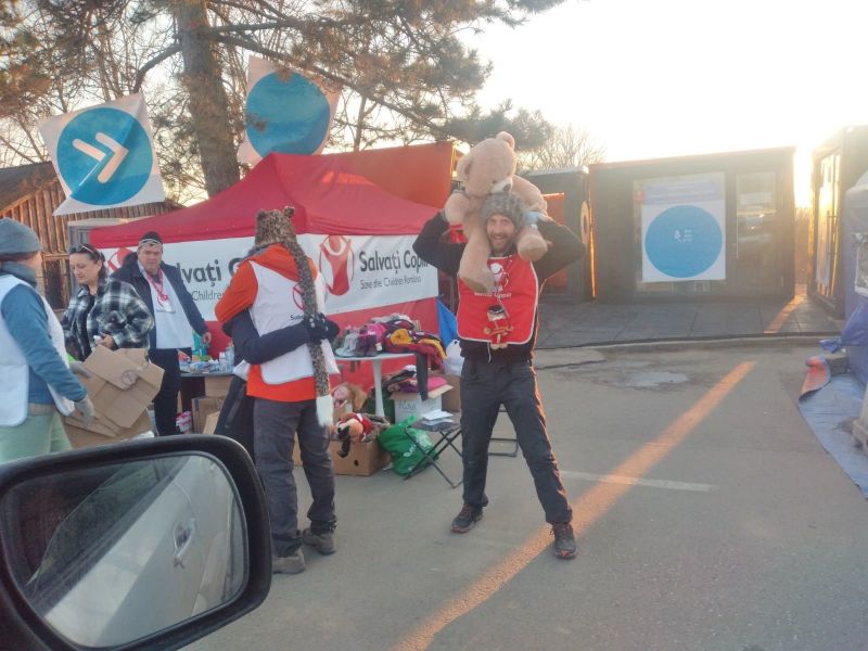 Опънати са десетки палатки - медицински пункт, места за отмора, павилиони за хранене, в които се раздават безвъзмездна топла храна, шоколади и чипсове. Клоуни забавляват малчуганите и им дават още плюшени играчки, натъпкахме джипа с плюшени играчки. Набутват ти в ръцете безвъзмездни сим-карти, питат гладен ли си, искаш ли сандвичи за из път, искаш ли да поспиш малко, имат ли потребност децата от нещо, имат ли топли облекла. И ти ръкопляскат, че караш цялостна кола с деца, тъй като още стотици дами и деца чакат на границата някой да ги вземе.