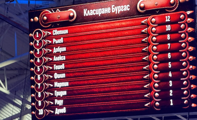 Рълев беше един от героите на вечерта. След като получи травма в полуфиналното тестване против Алекса Ерски, той не се отхвърли. За това му помогнаха и бурните възгласи на бургазлии, а на финалната права Рълев изненадващо измъкна успеха на сърбина.