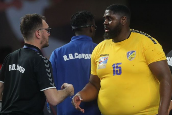 Хандбалист от Конго тежи 130 килограма и вече звезда на световното първенство