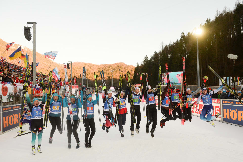 Норвежките в състав Каролине Кнотен, Ингрид Тандреволд, Тирил Екхоф и Марте Олсбу Рьозеланд изминаха трасето за 1:08.46.4 час без наказателна обиколка и с 9 спомагателни патрона.