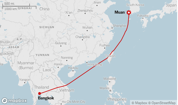 Повечето от пасажерите на борда на разрушилия се аероплан са били летовници, завръщащи се от проведена петдневна коледна отмора до Банкок. Карта демонстрира маршрута на самолета.