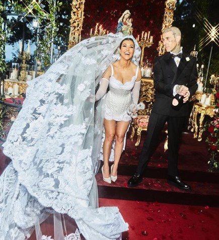 43-годишната Кортни Кардашиян се омъжи за Травис Баркър, на 46 години, в съда в Санта Барбара. По-късно двойката провежда по-голяма гала в Портофино, Италия.