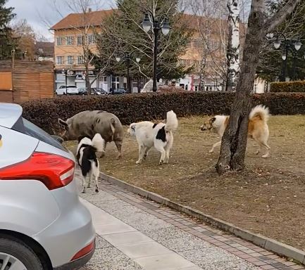 Грамадното прасе обикаляло самичък самичко, като наподобява било избягало от притежателите си. То бързо-бързо обиколило пътни артерии и пешеходни зони - под вещия взор на безпризорните кучета в града, като изчезнало в незнайна посока.