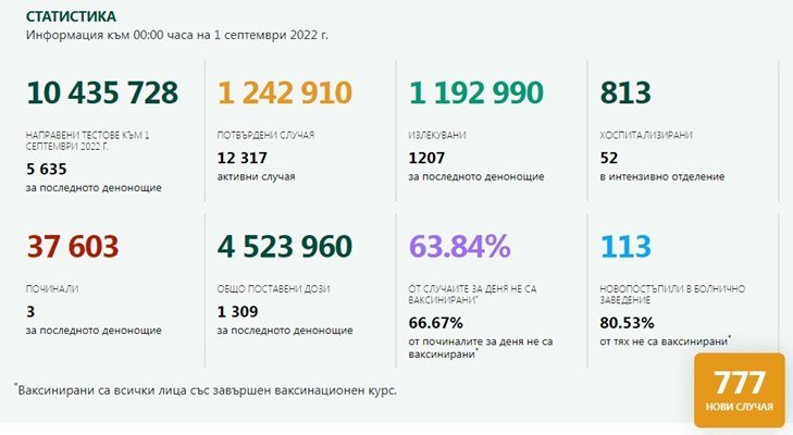 Общо 37 603 души у нас са изгубили борбата с новия ковид от доказаните 1 242 910 инфектирани от началото на пандемията.