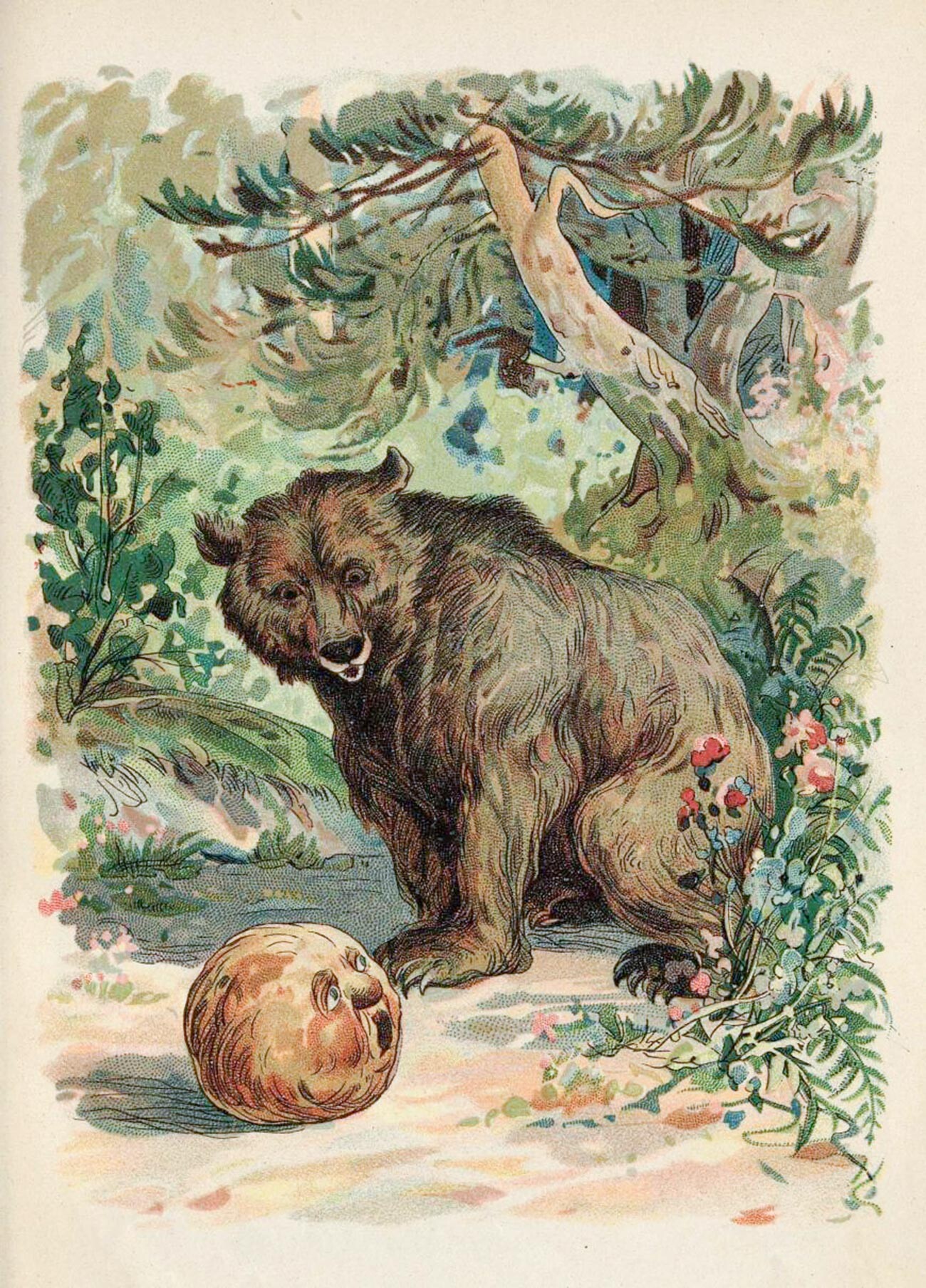 Сложила я да изстине на прозореца, само че тя пък паднала и се търколила. Докато се търкаляла по пътя, срещнала заек, вълк и мечка. Всички я плашели, че ще я изядат, само че тя била хитра и пеела: „ От дядо избягах, от баба избягах и от теб елементарно ще се отърва “. Три пъти тя сполучливо подминавала евентуалния съперник, само че не щеш ли срещнала лисицата – тя я надхитрила и въпреки всичко я изяла.