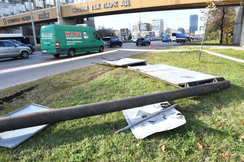 Табела падна на столичния бул. „ Цариградско шосе ” в обедните часове на 25 ноември. Пътното оборудване размаза кола, като по знамение водачът не е потърпевш. Lupa.bg се опита да разбере кой стопанисва указателните табели и на кого би трябвало да се потърси отговорност за случая.