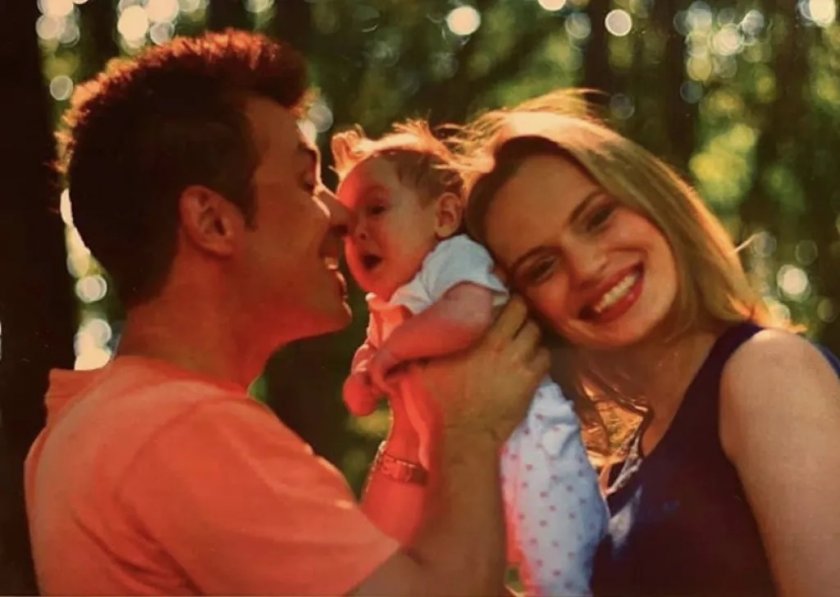 Дими и Ива се радват на новородената Дара - годината е 2002-а
