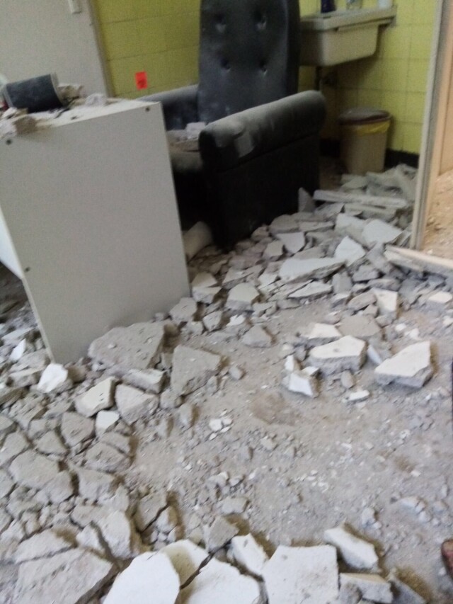 На фотосите се вижда, че големи части от тавана са паднали в кабинета. Според феновете на bTV в прилежащото крило на болничното заведение се прави ремонт и може това да е довело до случая.