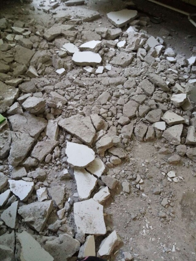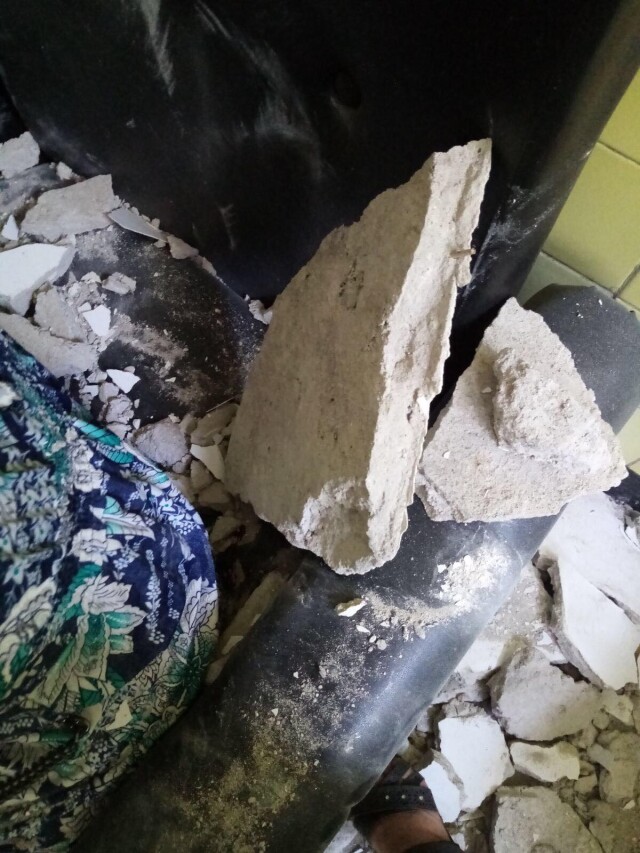 Според пострадалите целият таван е паднал. Пострадали са две дами – едната е с черепно-мозъчна контузия, а другата е с по-леки пострадвания.