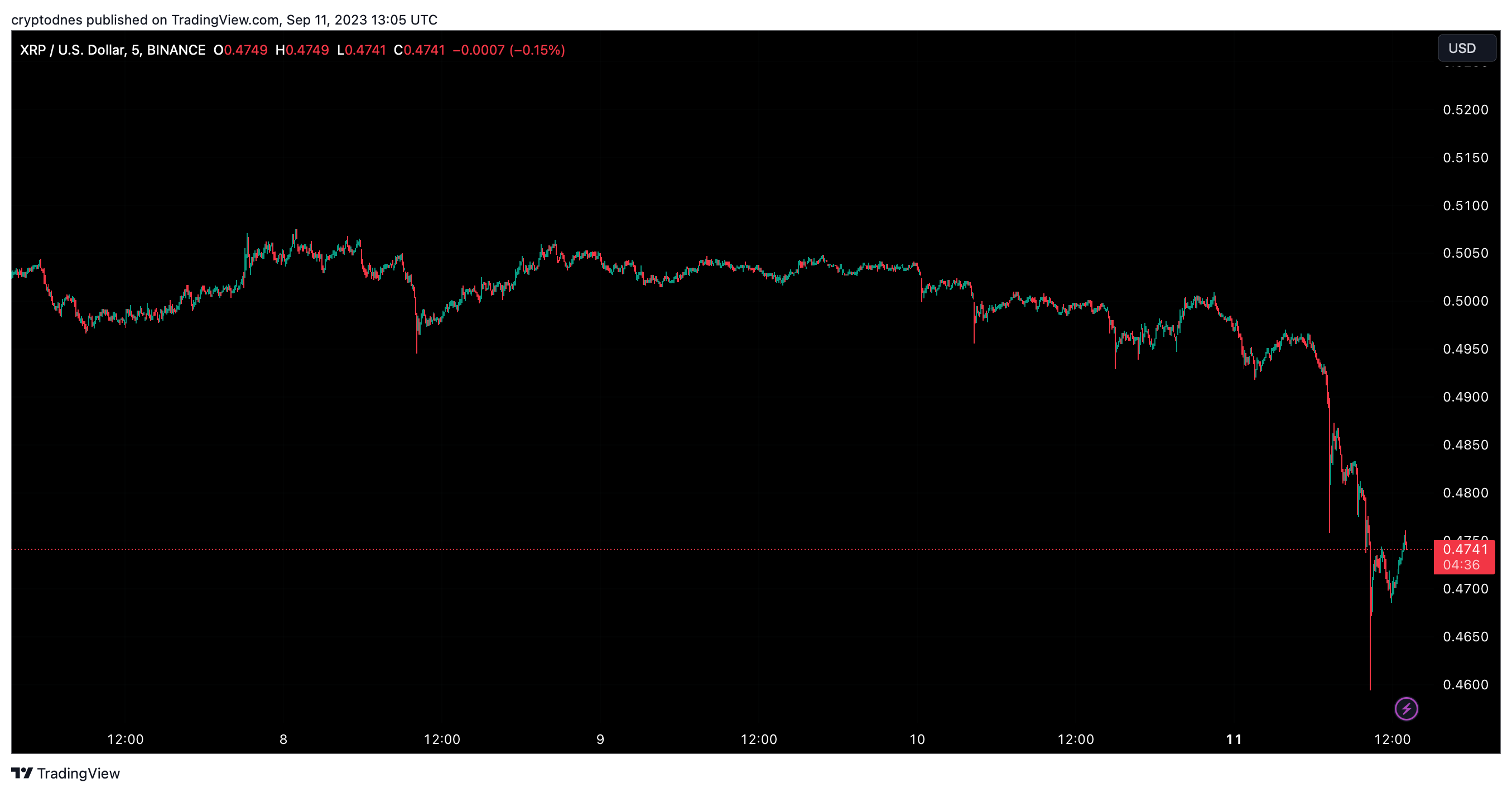 Едновременно с това цената на XRP се намали до $0.47 все още на писане на публикацията, което алармира за спад от над 5% в границите на последните 24 часа.