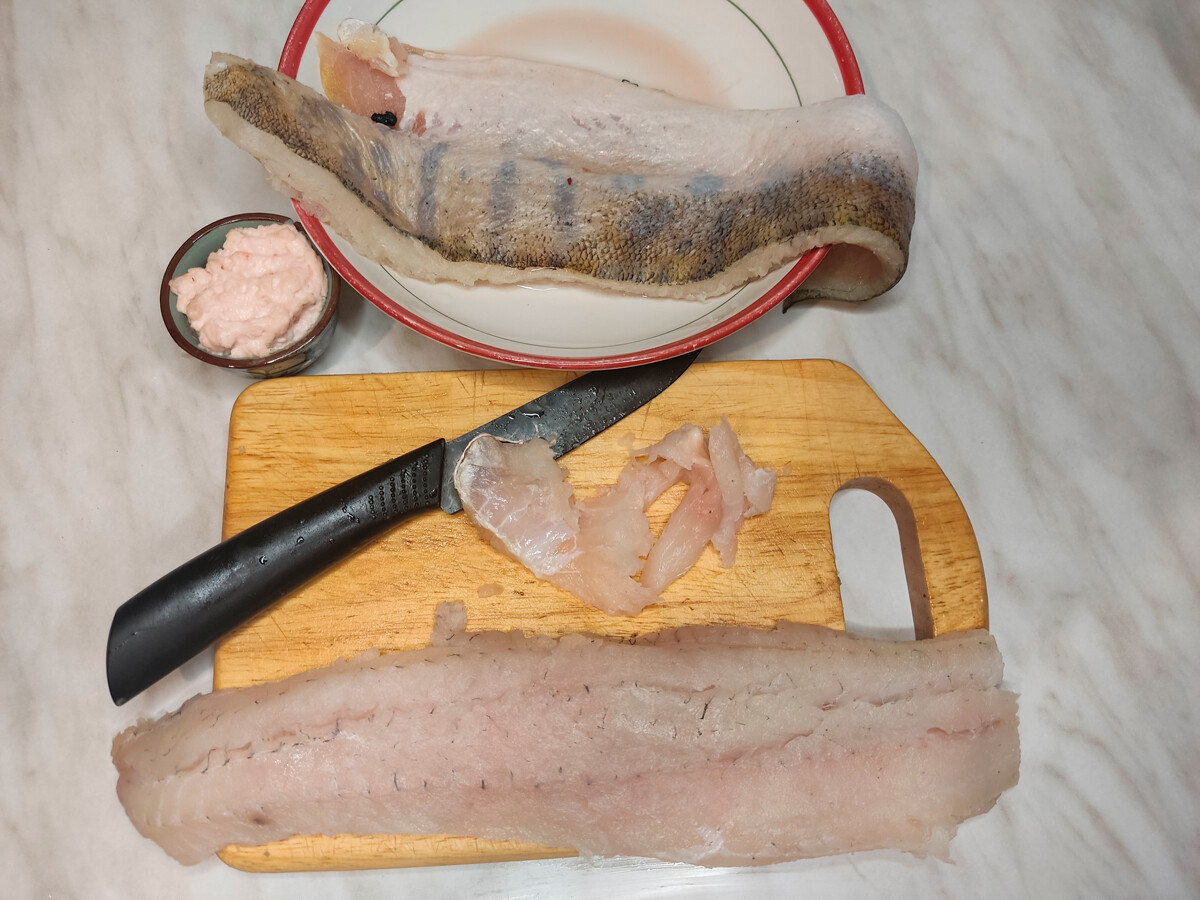 Направата на рибни кенели. За задачата отстранете костите от филето на бялата риба и го нарежете на ситно.