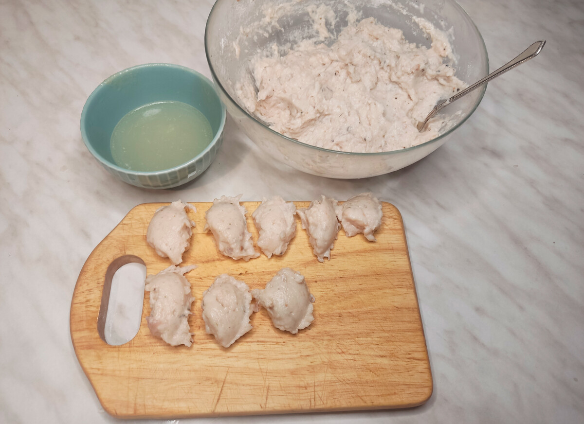 Използвайте блендер, с цел да получите хомогенна примес. След това с чаена лъжичка оформете рибните кюфтенца.