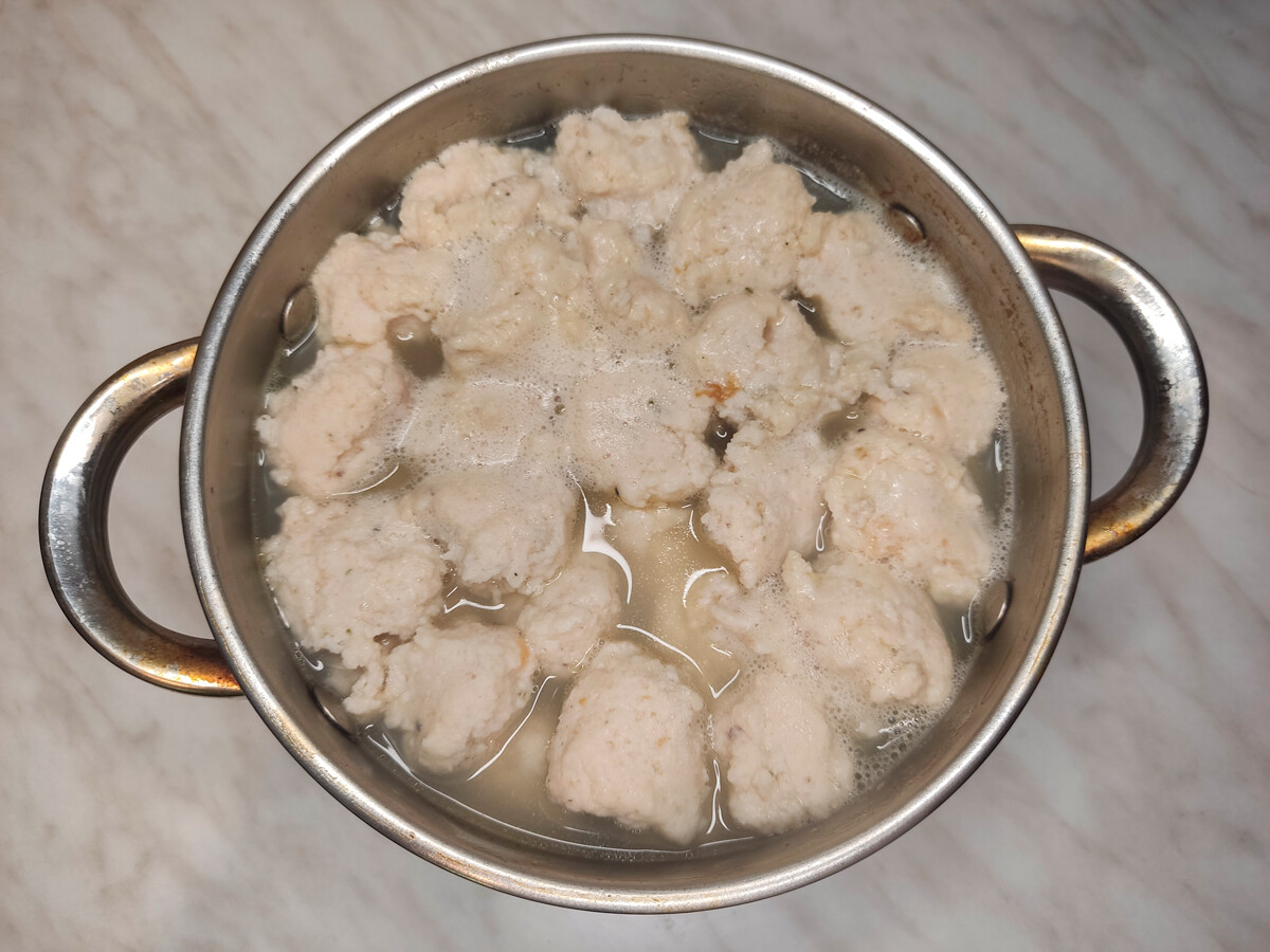 Сварете рибните кенели в бульона за към 10 минути. След това ги отстранете.