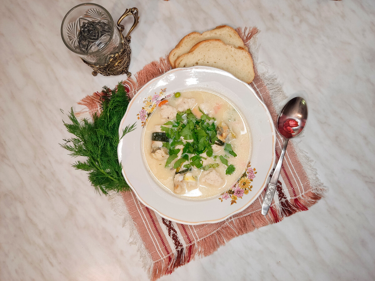 Тази рибена чорба е ароматна и по-богата разновидност на известната уха, която се сервира на императорските пиршества.