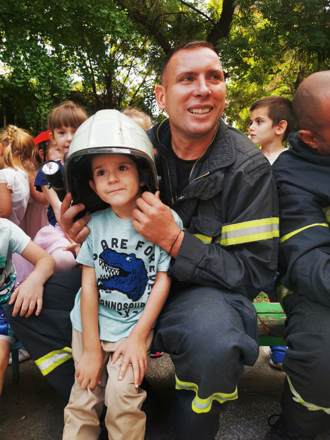 Малчуганите ще могат да се качат в пожарен автомобил и ще надникнат в раклите, цялостни с „ куп секрети за елементарните хора “. Резачка, моторен флекс и част от инструментите, с които огнеборците си служат, ще оставят отпечатък в минувачи и гости.
