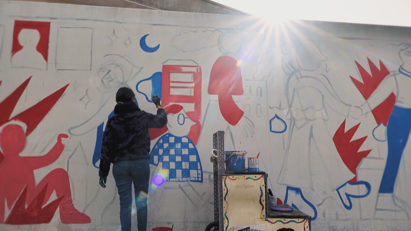 " Тук съм, с цел да обрисувам тази стена, да направя произведение, въодушевено от битката против насилието. Тя съставлява нещо като марш на дамите. Отляво можем да забележим дами в търсене на помощ и по-късно, в случай че гледате стенописа вдясно, ще видите, че обстановката се трансформира, тъй че дамите дружно могат да стигнат на всички места, където пожелаят, каквато е концепцията на картината ", споделя той.