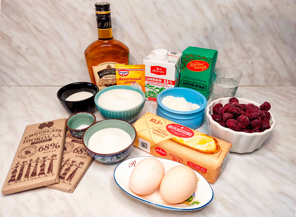Масло – 300 гЗахар – 180 гСметана 35% – 100 гКакао на прахуляк – 35 гКоняк – 30 мл