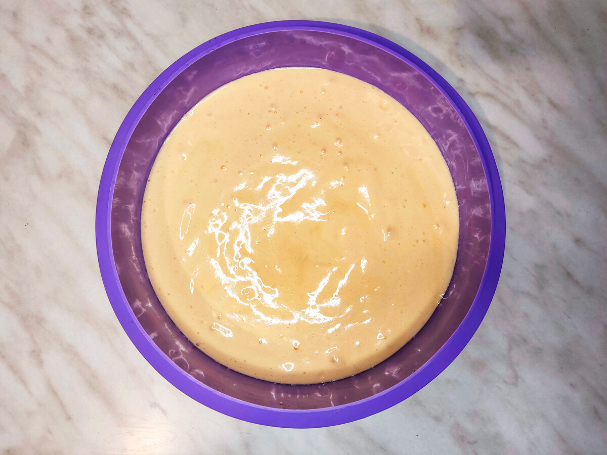 Разбъркайте с лъжица. Разстелете от горната страна глазурата и я загладете.