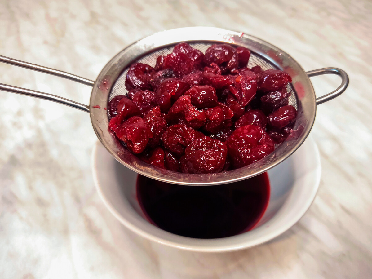 За начало изсипете коняка върху черешите и ги оставете да покиснат в него за 4-5 часа или за през нощта.