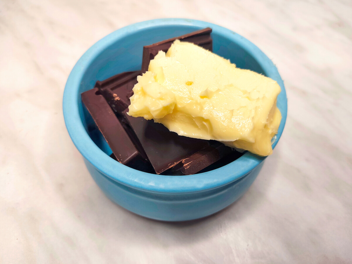 Загрейте маслото и шоколада в микровълнова фурна, само че доста деликатно да не се претопли шоколадът.