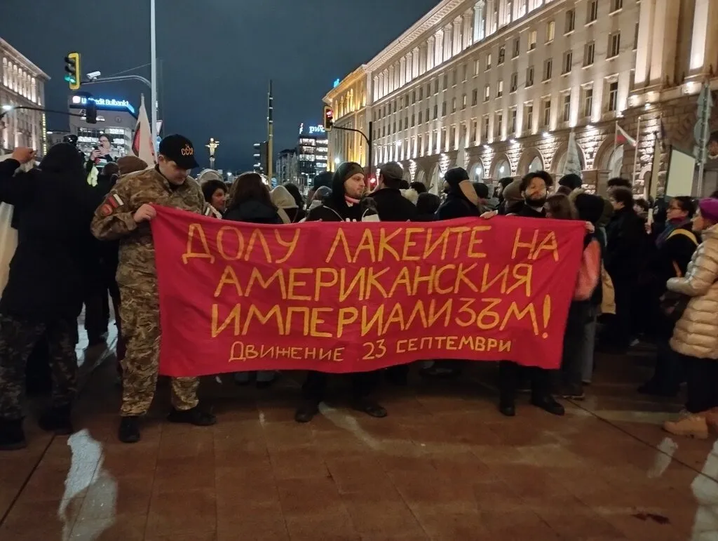 Тази вечер жители се сърбаха на митинг пред постройката на Народното събрание в София и се оповестиха против присъединяване на България в Съвета за мир под патронажа на Съединени американски щати.