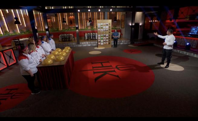 Тази вечер тимовете в Hell’s Kitchen България за финален път бяха Сини и Червени. Шеф Ангелов провокира готвачите с кулинарен триатлон, който дефинира тяхната орис. Черните куртки, които са присъщи на същинските пълноправни шефове, първи облякоха дамите от Червения тим.