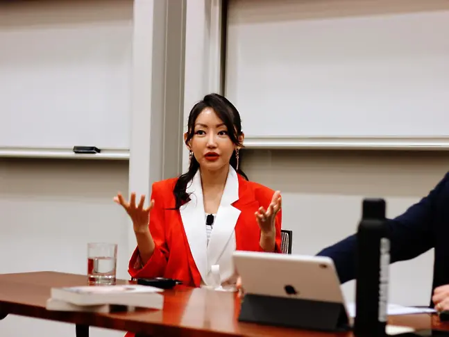 Снимка: Фейсбук,Yeonmi Park Сега, три години откакто завършвауниверситет със компетентност по права на индивида, Парк подлага на критика пробудения иделизъм в Съединени американски щати.