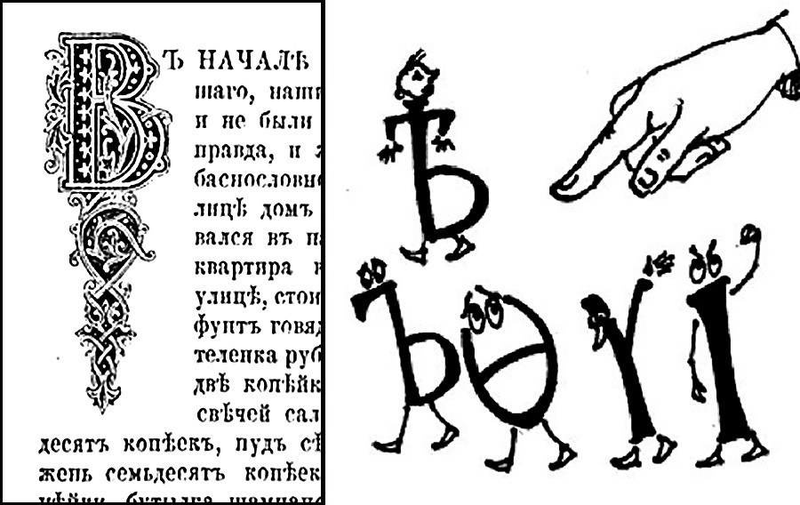Преди революцията съветската писменост е от 35 букви, няма общи правила на правописа, а единствено наложеният още по времето на Петър I цивилен шрифт. Петър се е стремял да ограничи властта на църквата и за задачата измисля опростено изписване на буквите за държавните укази, светските документи и за първите вестници.