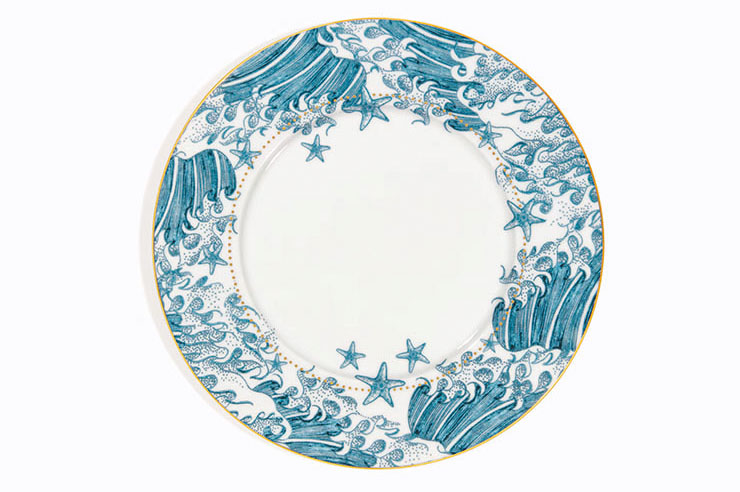 Декорацията на сервизите от сбирката La Vague на Dior Maison е въодушевена от „ Голямата вълна край Канагава “, творбата на Кацушика Хокусай.
