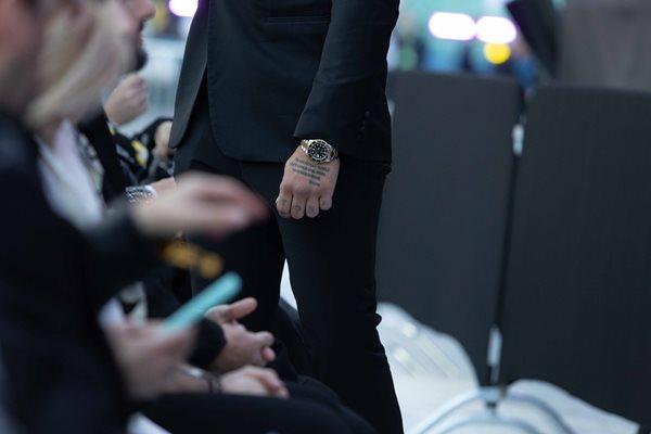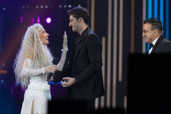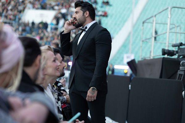 Първи под светлините на прожекторите падна на колене Димитър Атанасов от дуета Димитър и Христо. Той насочи сантиментално предложение към своята половинка - цигуларката Анна-Мария, която бе част от осъществяването им.