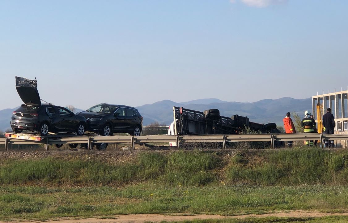 Преобърнал се е автовоз. Инцидентът е станал в лентата, която е в посока Околовръстния път. На местопроизшествието са пристигнали екипи на КАТ, медици и пожарникари.