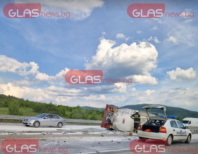 Бетоновоз се е обърнал настрани на пътното платно, при произшествието е пометена разграничителната мантинела сред двете пътни платно. Машината е навлязла в насрещното. Катастрофата е в посока Пловдив, след Ихтиман преди тунела.