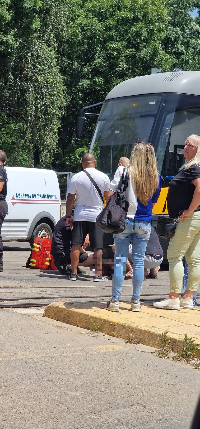 Тежък случай е станал преди минути в София. Трамвай е блъснал пешеходка на пътя. Ударът е настъпил на бул. „ Никола Мушанов “ и „ Възкресение “. Жената лежи на асфалта до релсите.