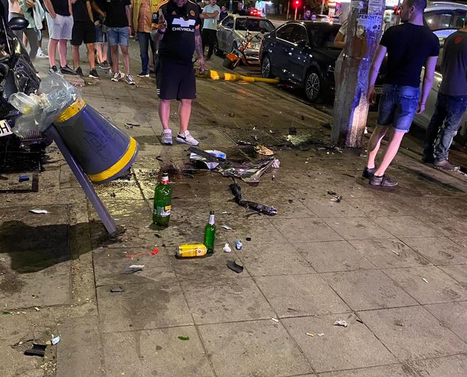 Поражения има и по градката инфраструктура - повален е стъл. Според очевидци водач е избягал от местопроизшествието.