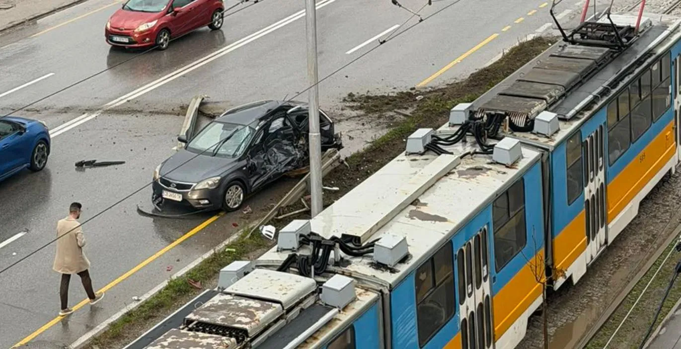 Кола и трамвай са се блъснали на бул. " Овча купел ".