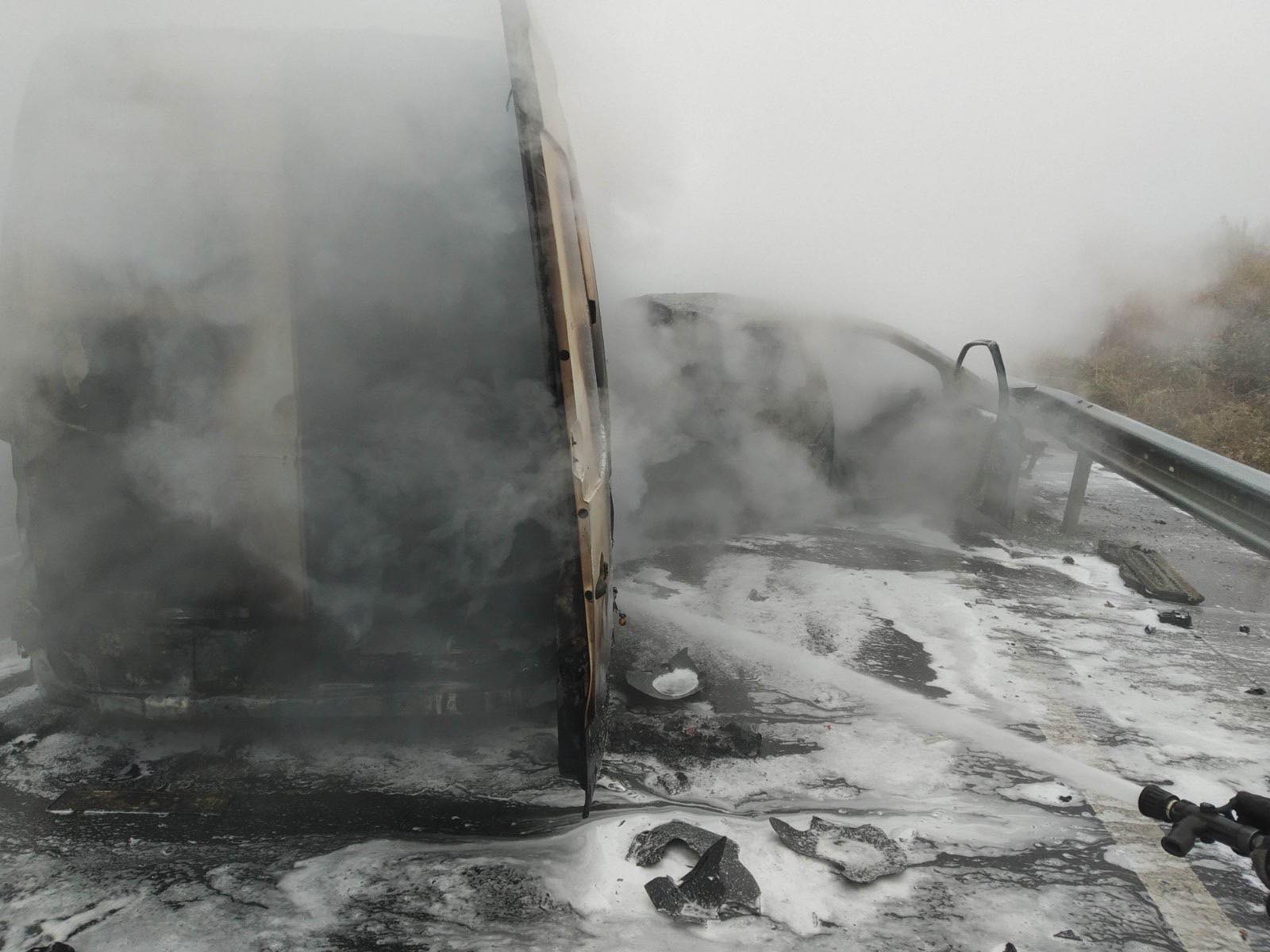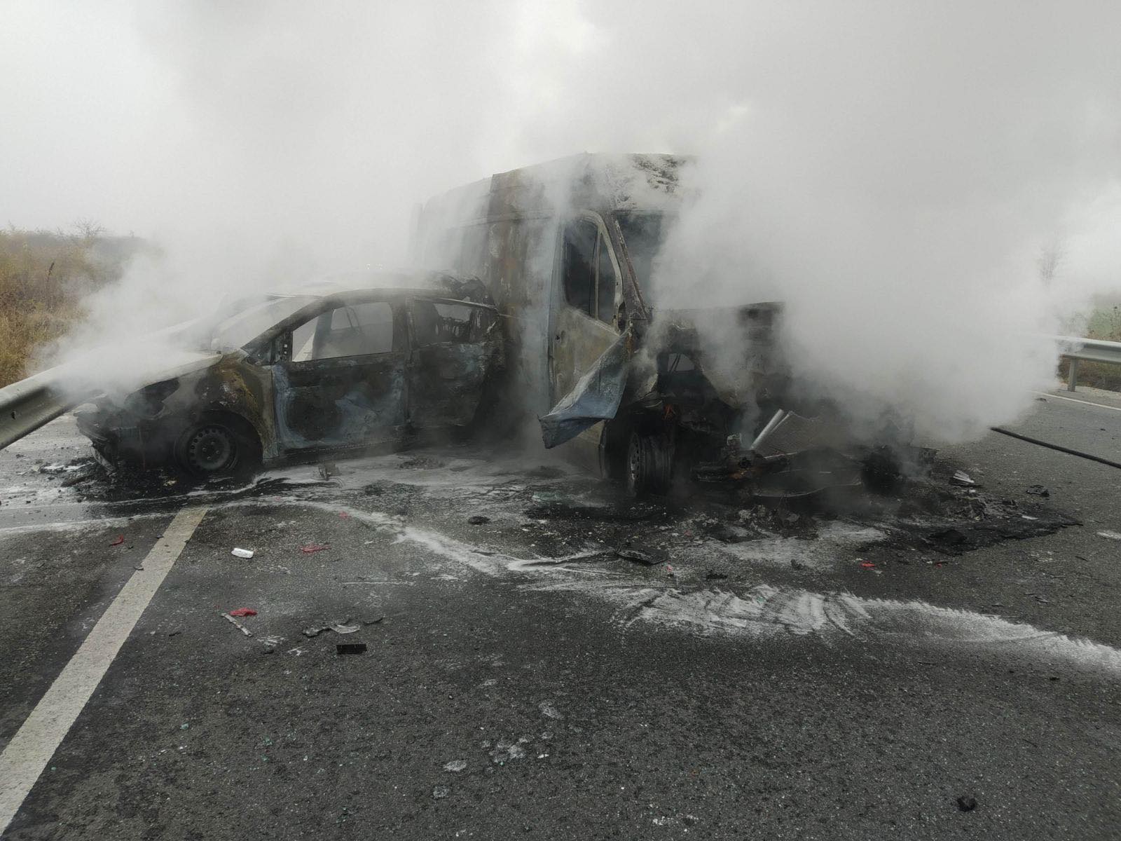 Тежка катастрофа с жертва край Пазарджик, горят коли СНИМКИ