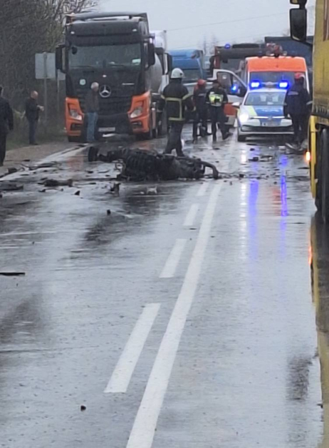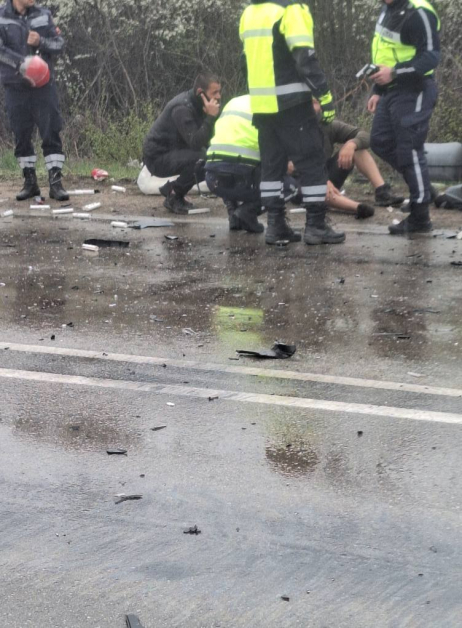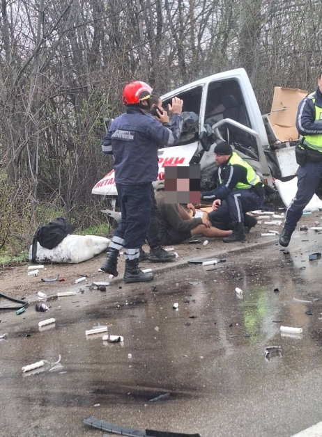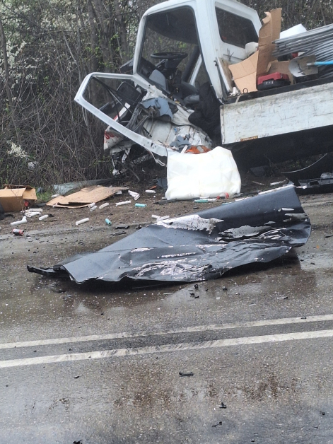 На фотоси от мястото на произшествието, които се популяризират в обществените мрежи, се вижда по какъв начин единият автомобил е изцяло разрушен и изхвърлен в канавката, а другият – камион – е с тежки провали в предната част. Част от товара му също е разпръснат на пътното платно.