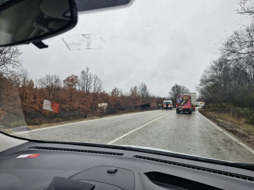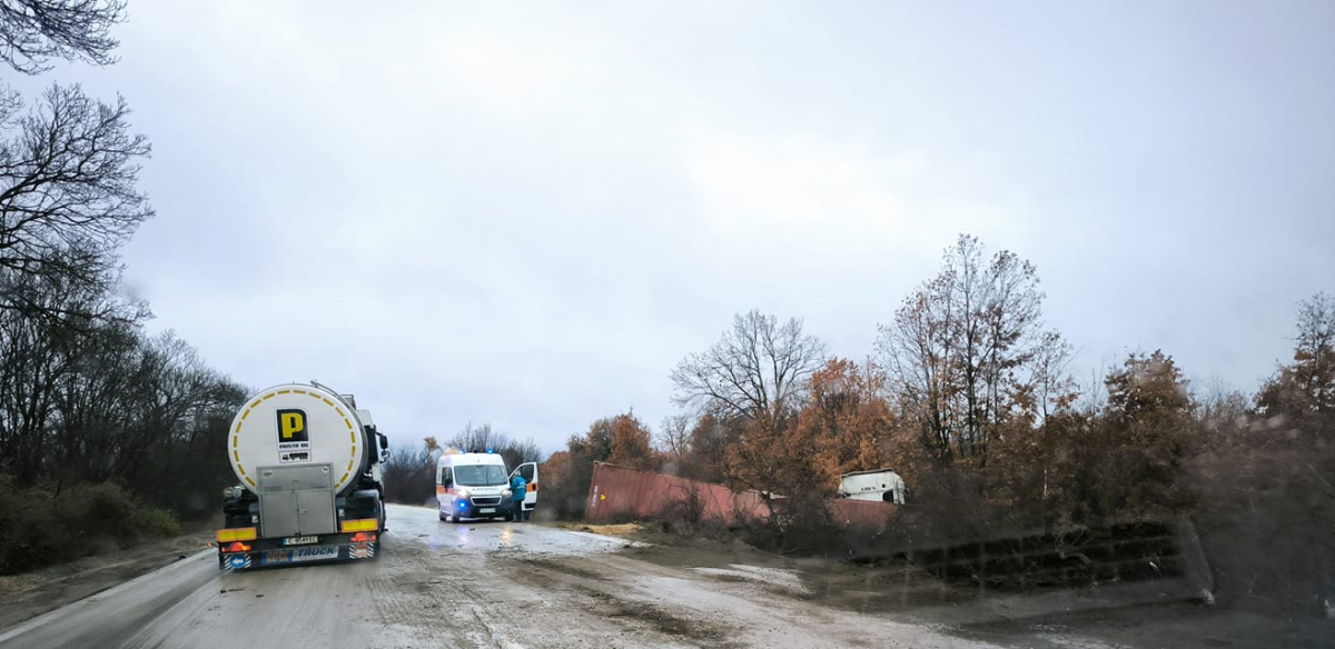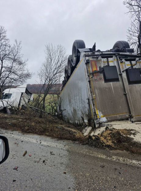 Тежка катастрофа с камиони край Плевен, единият е по таван СНИМКИ