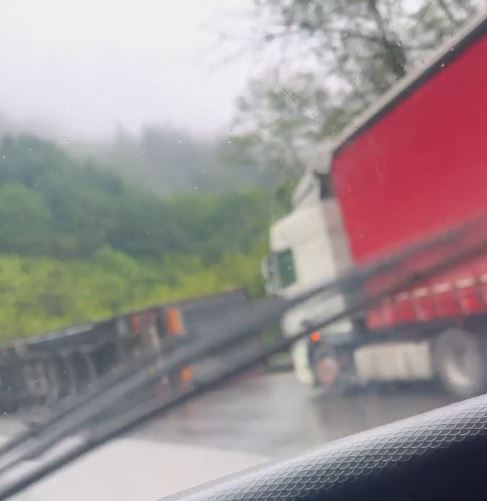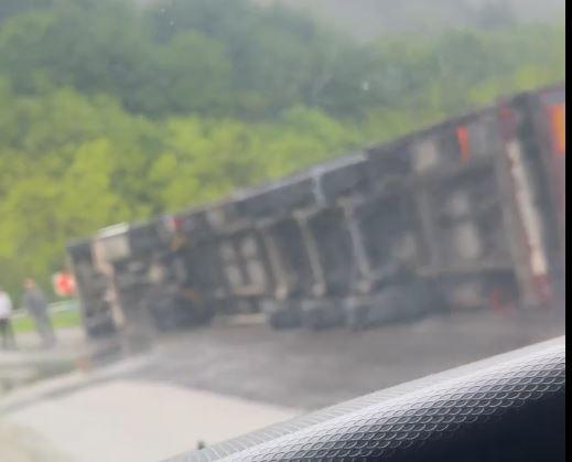 За това оповестяват пасажери в обществената мрежа Фейсбук. Камион се е обърнал на пътното платно.