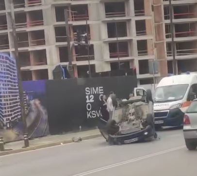 Кола се обърна по таван в София! Пристигнаха медици и огнеборци ВИДЕО+СНИМКИ