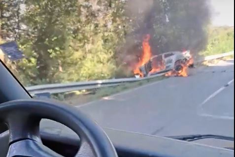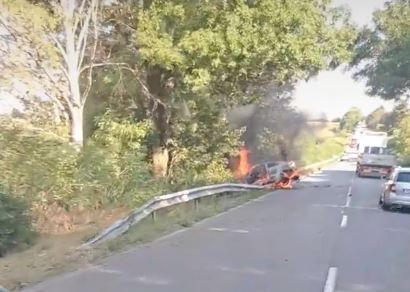 Тежък пътен случай затруднява придвижването в Плевенско. Кола се е блъснала в мантинела и е изгоряла, настояват жители.