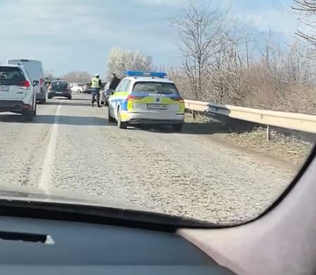 На местопроизшествието е дошъл екип на Министерство на вътрешните работи. Движението е затруднено, само че не е брокирано - минава се през едната лента.