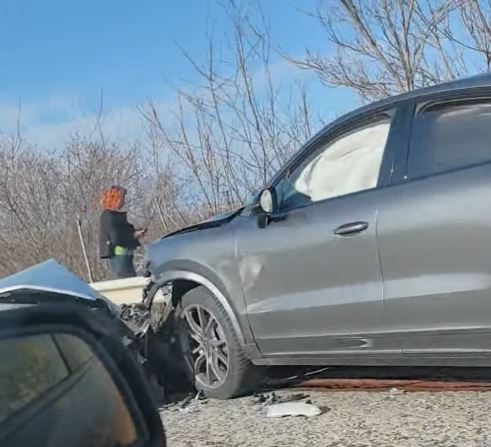 " Порше " е с отворени въздушни възглавници и разрушена предна част. Сериозни провали има и по сиво комби.