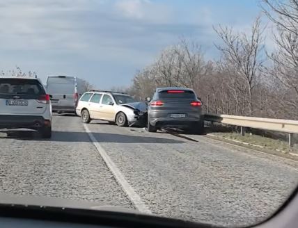 Произшествието е след Долни Дъбник, в посока столицата. Блъснали са се две коли, материалните вреди са обилни.