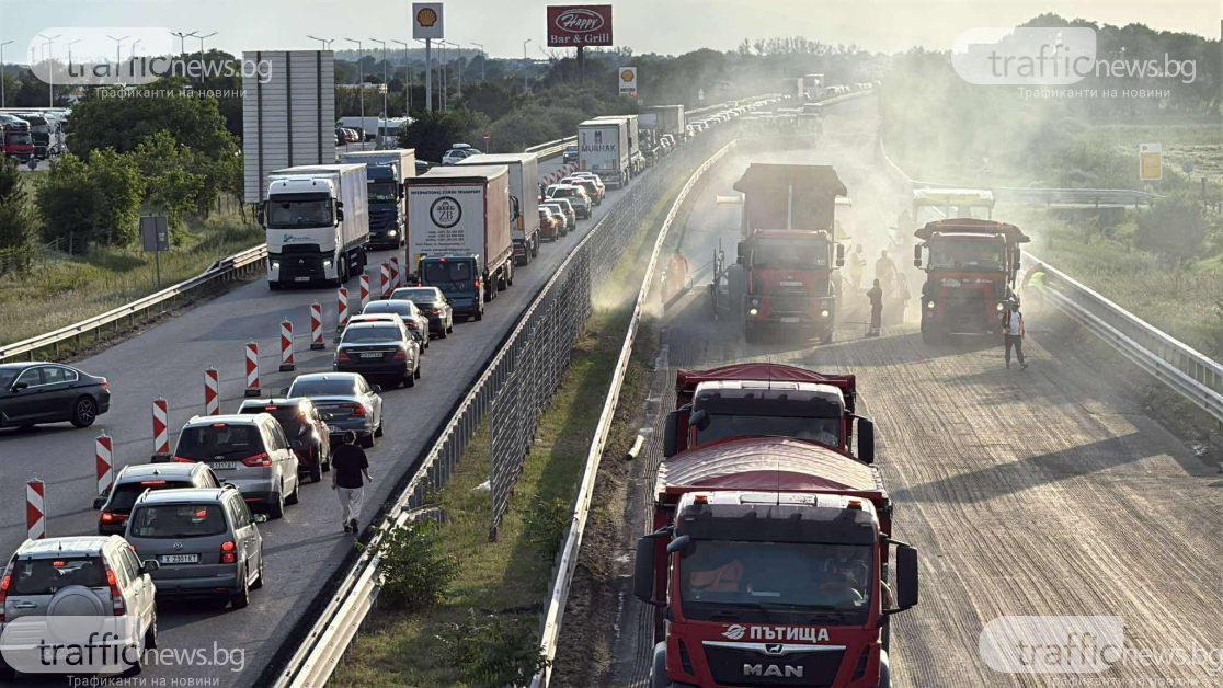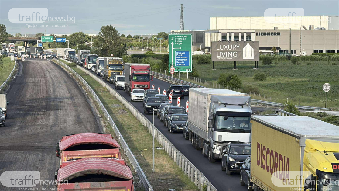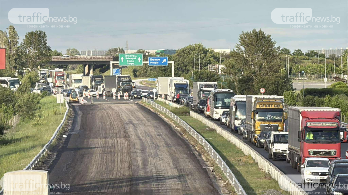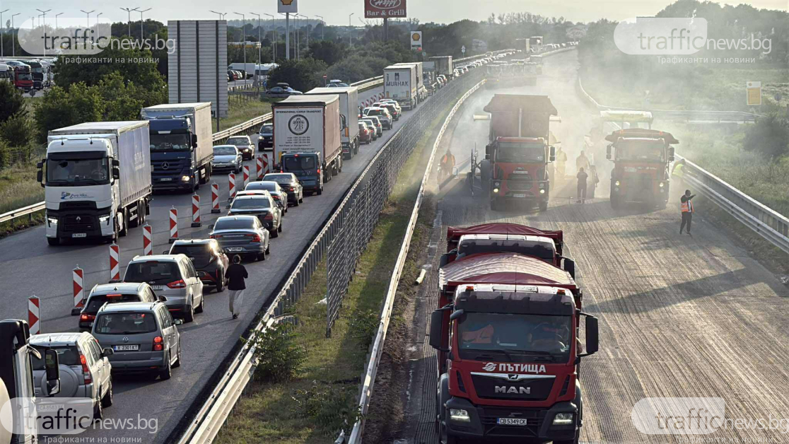 На 13-килотеровия сектор сред Пловдив и Пазарджик, който е в ремонт се образува голяма запушалка от колите, които се предвижват по автомагистралата в последния почивен ден.